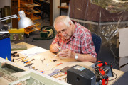 Seit Januar 2013 entsteht bei uns als eigenständiges Modell das Neubaugerüst der Schwebebahn, abschnittsweise über der Wupper und der Straße. Zwei Stationen sind im Bau, zwei Wendeschleifen und Abstellgleise. Alles im Maßstab 1:87 und in präziser Lasercut-Technik.