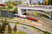 Unsere H0-Großanlage wird digital gesteuert und hat auf zwei Ebenen 70 m² Anlagenfläche. Auf rund 400 Gleismetern und mit 110 Weichen, DKW, EKW und Kreuzungen wird der Fahrspaß großgeschrieben.