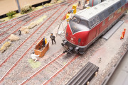 Aber nicht nur die Geräuschkulisse ist imposant. Besonders die Fahrzeuge wirken nachhaltig auf interessierte Betrachter. Auf den ausgestellten Modulen mitsamt eines BWs wird während unserer Vorführungen ganz im Sinne des Modellbahners rangiert.